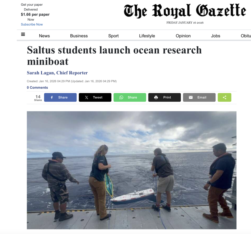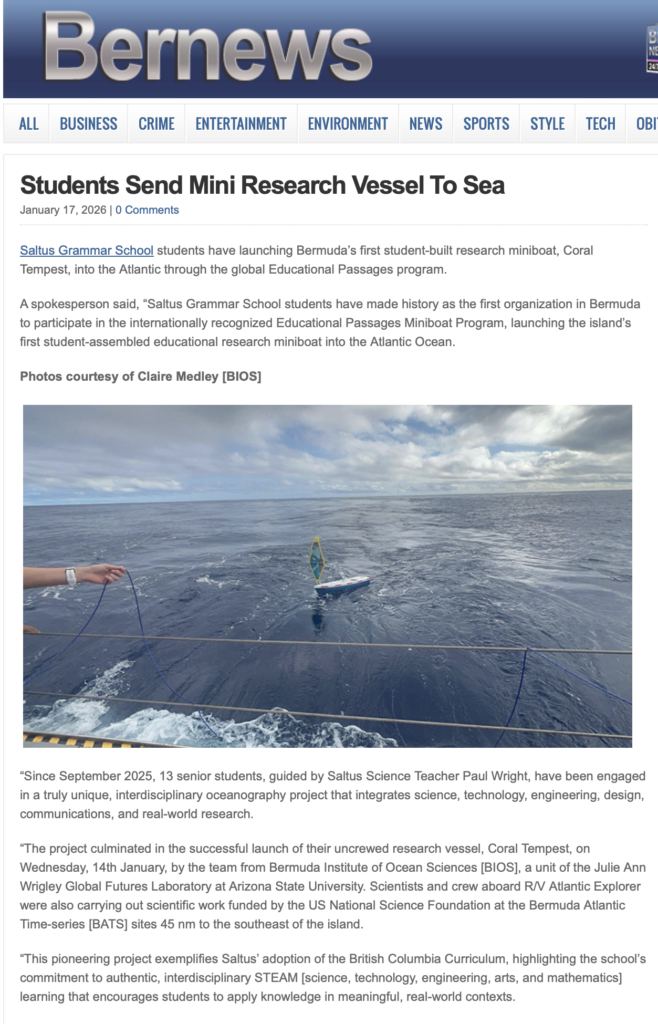 A local newspaper, the Royal Gazette caught wind of M/B Coral Tempest and arrived at Saltus Grammar School to interview the crew and learn more about the miniboat project! Read more in their article: Saltus Pupils Prepare to Launch Their Atlantic Research Vessel.