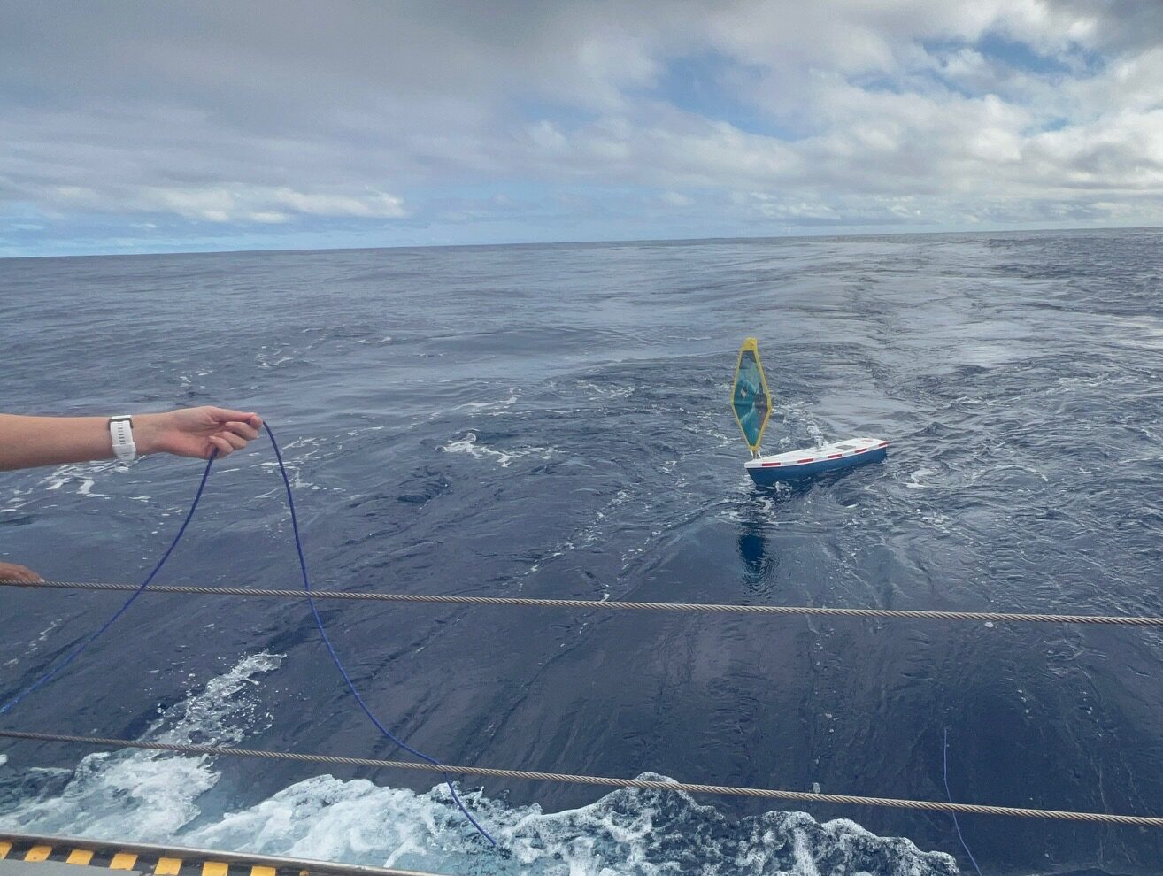 Here is the first image captured from the miniboat’s camera right after departing the R/V Atlantic Explorer: