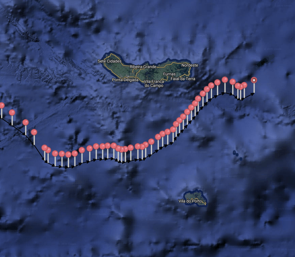 Crimson Tide is sailing just 50 nautical miles off the coast of the Azores! Is this where she will call home or will she continue her journal past these islands?
