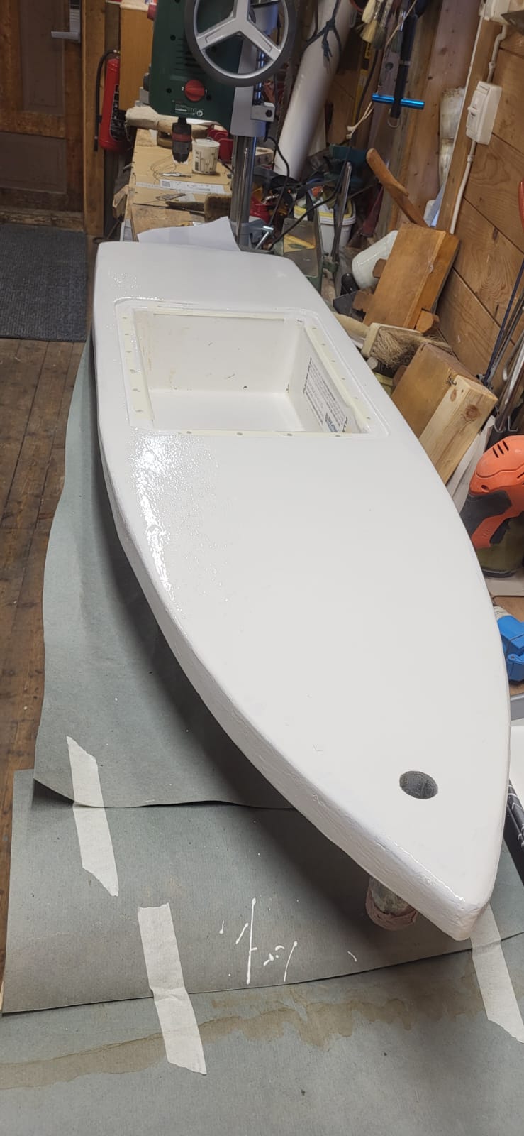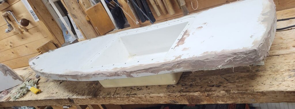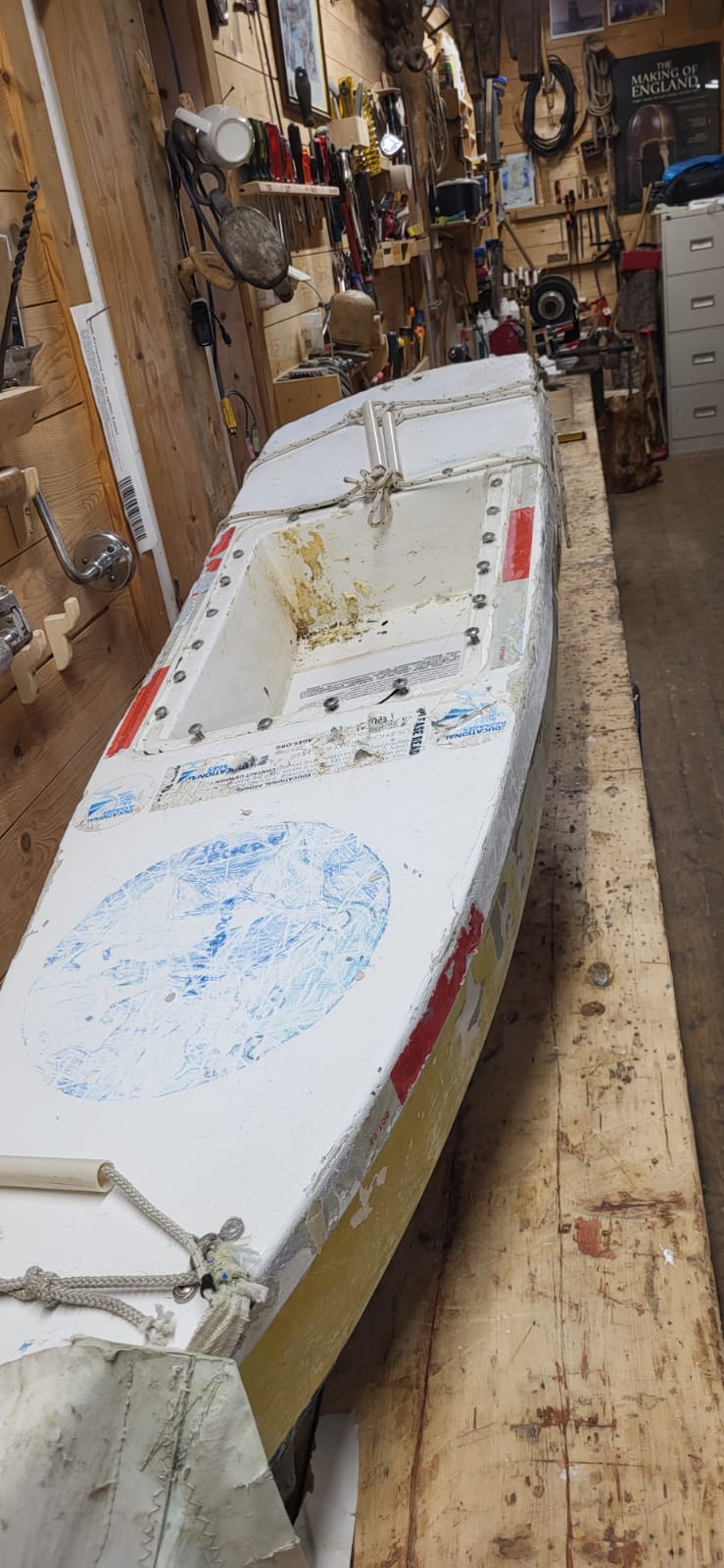 Since being recovered in Norway in July 2025, a lot of necessary repairs have been underway for a future relaunch. Per has graciously taken on the task of repairing Crimson Current himself, turning a battered miniboat back to being a sea worthy vessel! He has shared the impressive progress of these repairs with us. As you scan before and after photos, keep in mind that Crimson Current not only withstood ocean impact at sea for 6 months before landing, but also spent 10 months battling the waves, rocks, weather, and seasons in a remote cove in Norway.