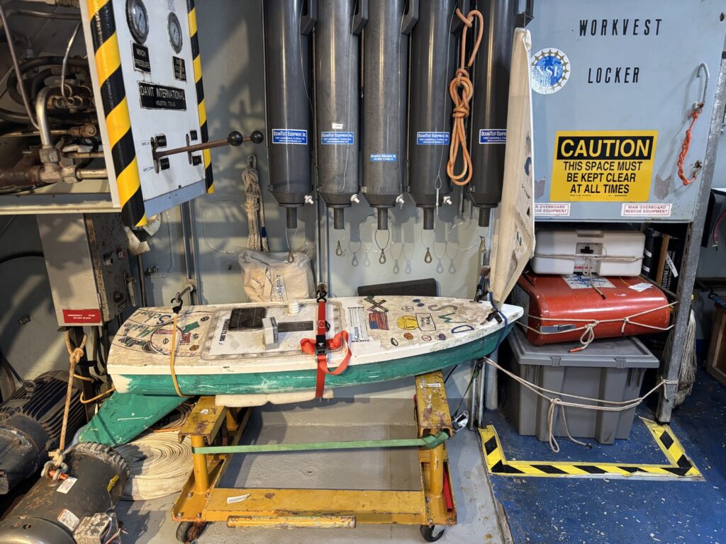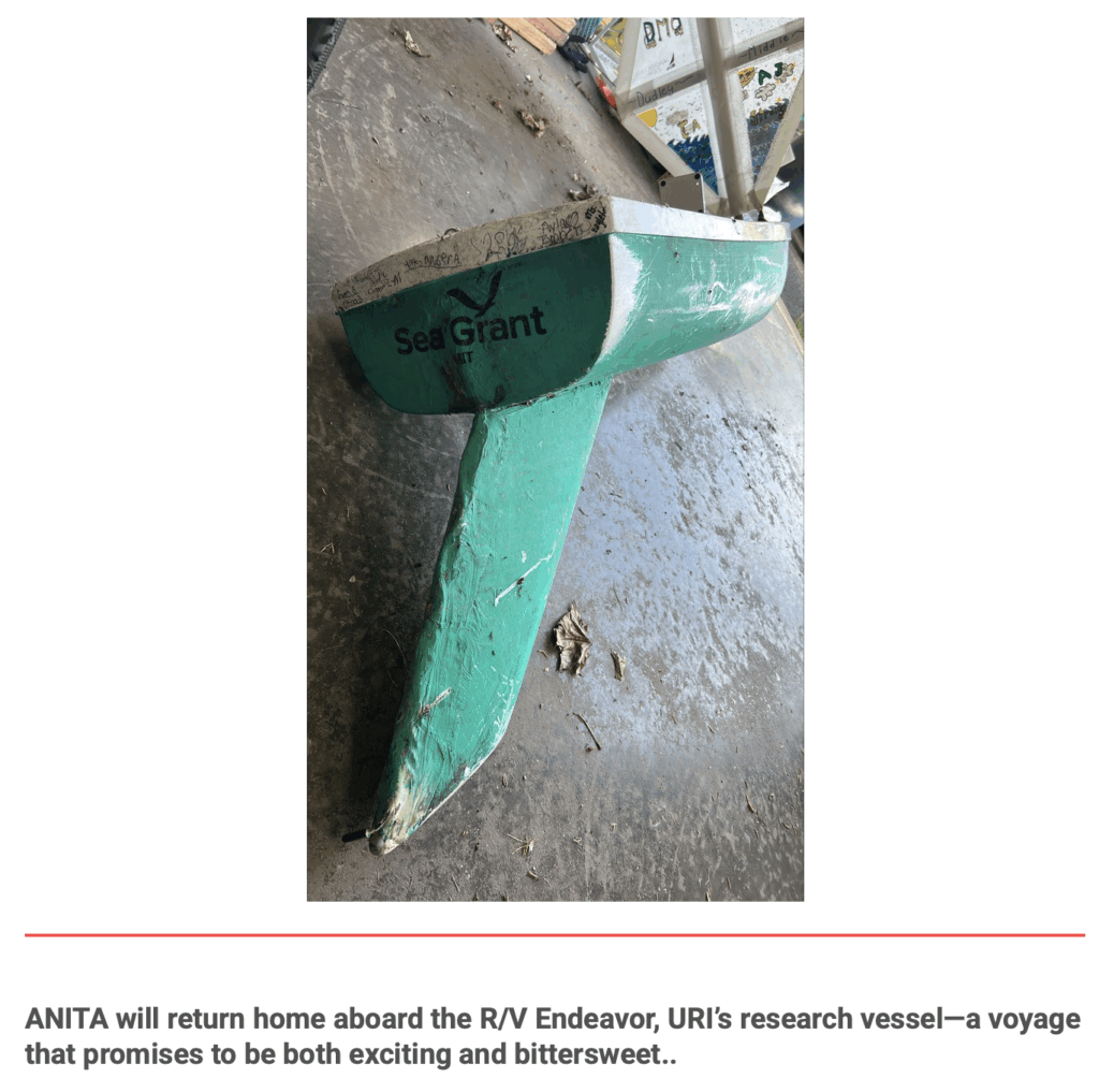 The DMS Anita‘s first voyage occurred May 21 to 28, 2024. It was recovered by Jim Manning in Falmouth, MA and brought back to the school. Click on the titles above to explore more, and below for its next adventure.