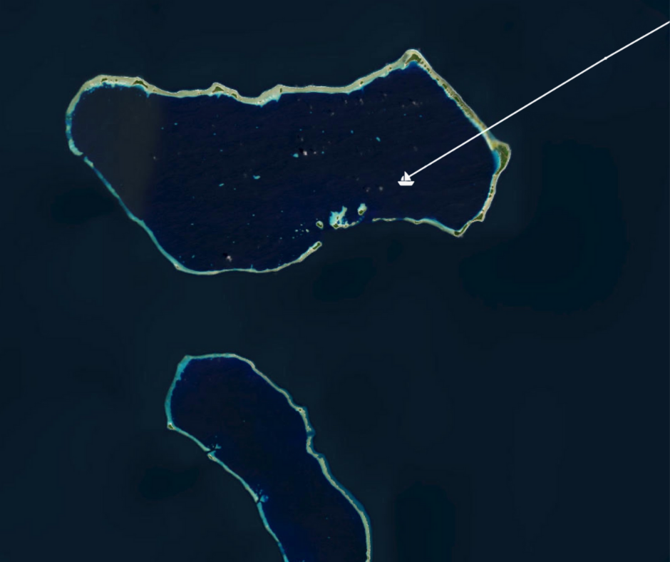 On December 26th, the Captains and crew of the M/B Panda Express (white track and sail boat icon) noticed that she was nearing the Marshall Islands in the Pacific. Sure enough, the next day, Panda was reporting from the middle of Wotje Atoll!