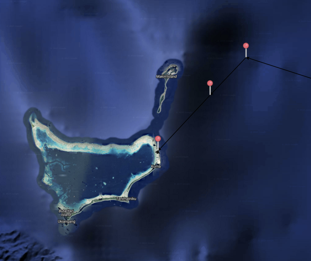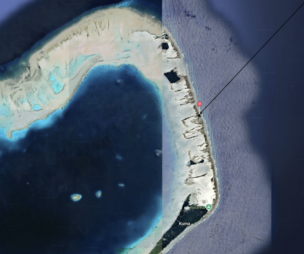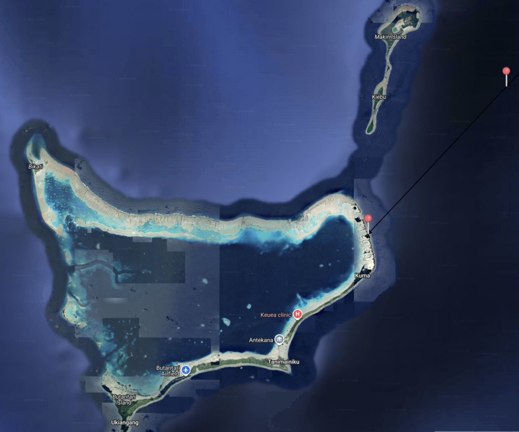 M/B Sloughinator has landed after traveling out at see for 127 days! She found her way to a nice sandy beach in Kiribati’s Butaritari Atoll, just north of Kuma village. We are already working with contacts who helped to recover M/B Nishi Kazi in the past and are hopeful for her rescue.